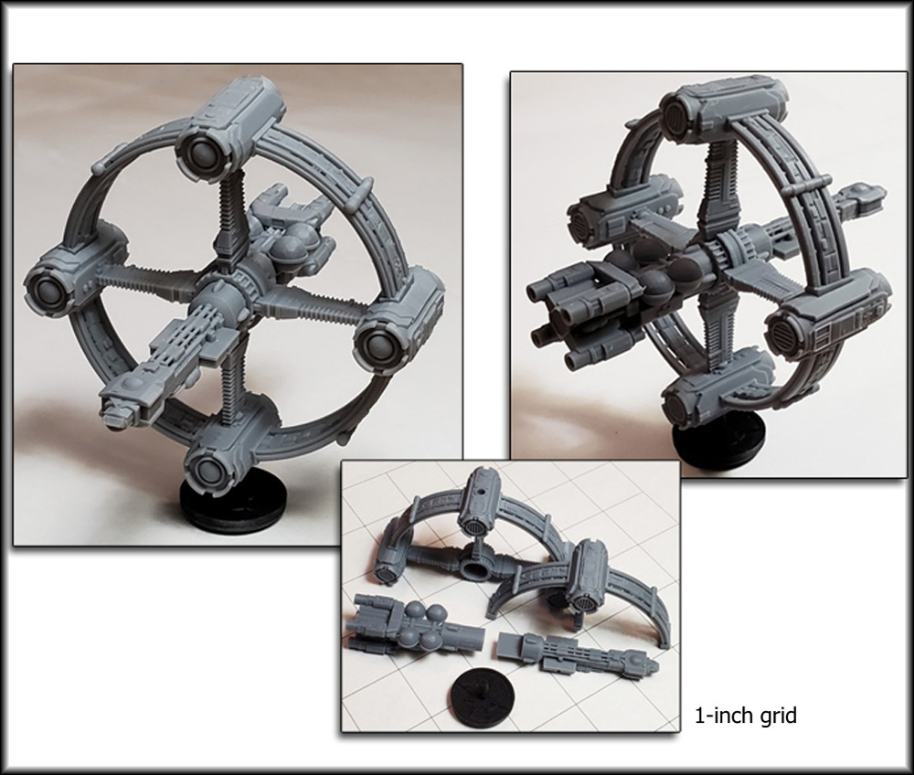 Note that the unpainted 3D-printed resin miniature comes in three pieces (ring and 2 spine sections) and gluing is required for assembly.