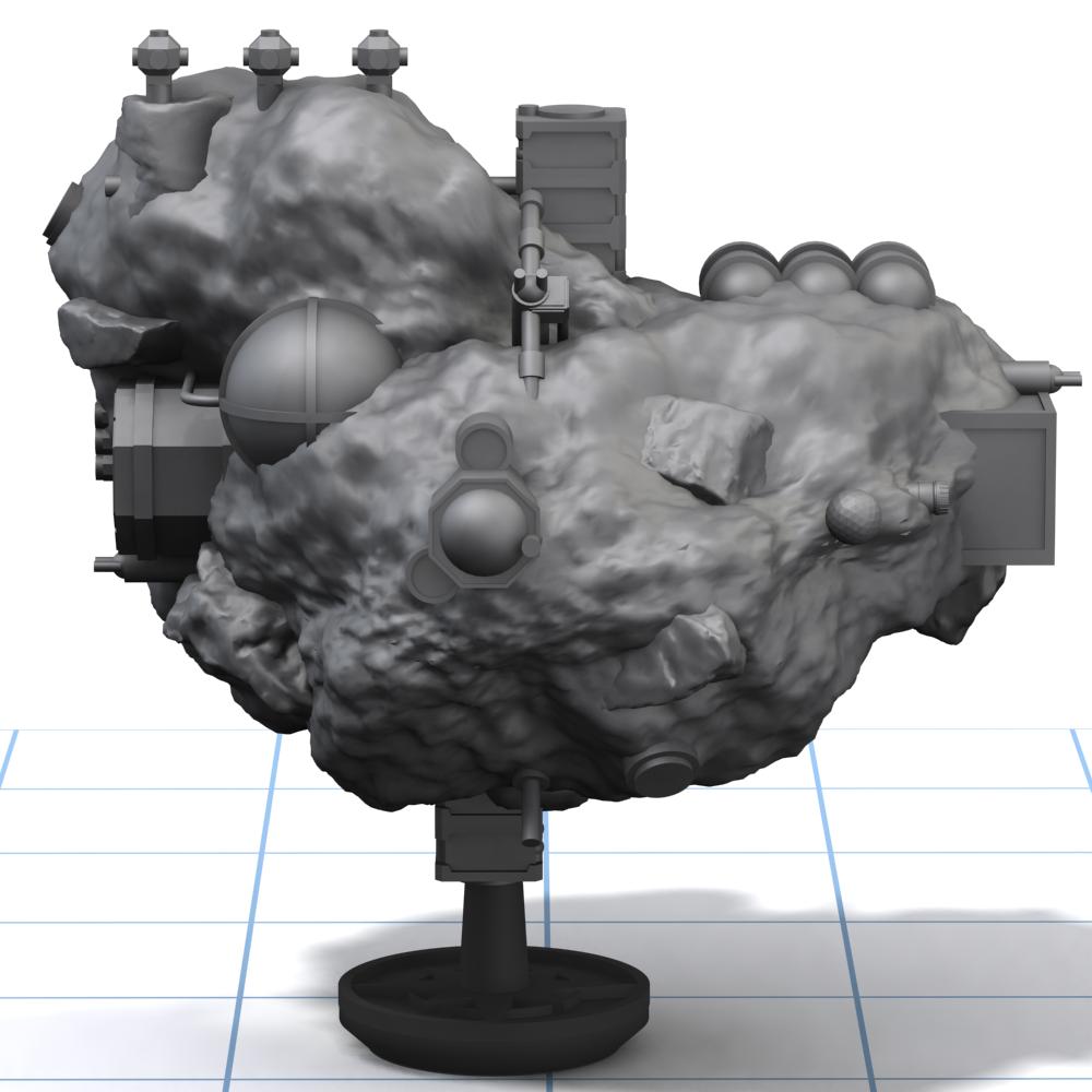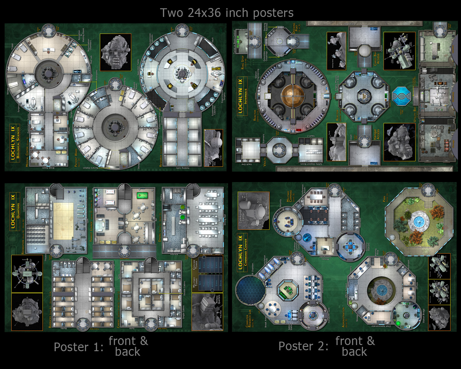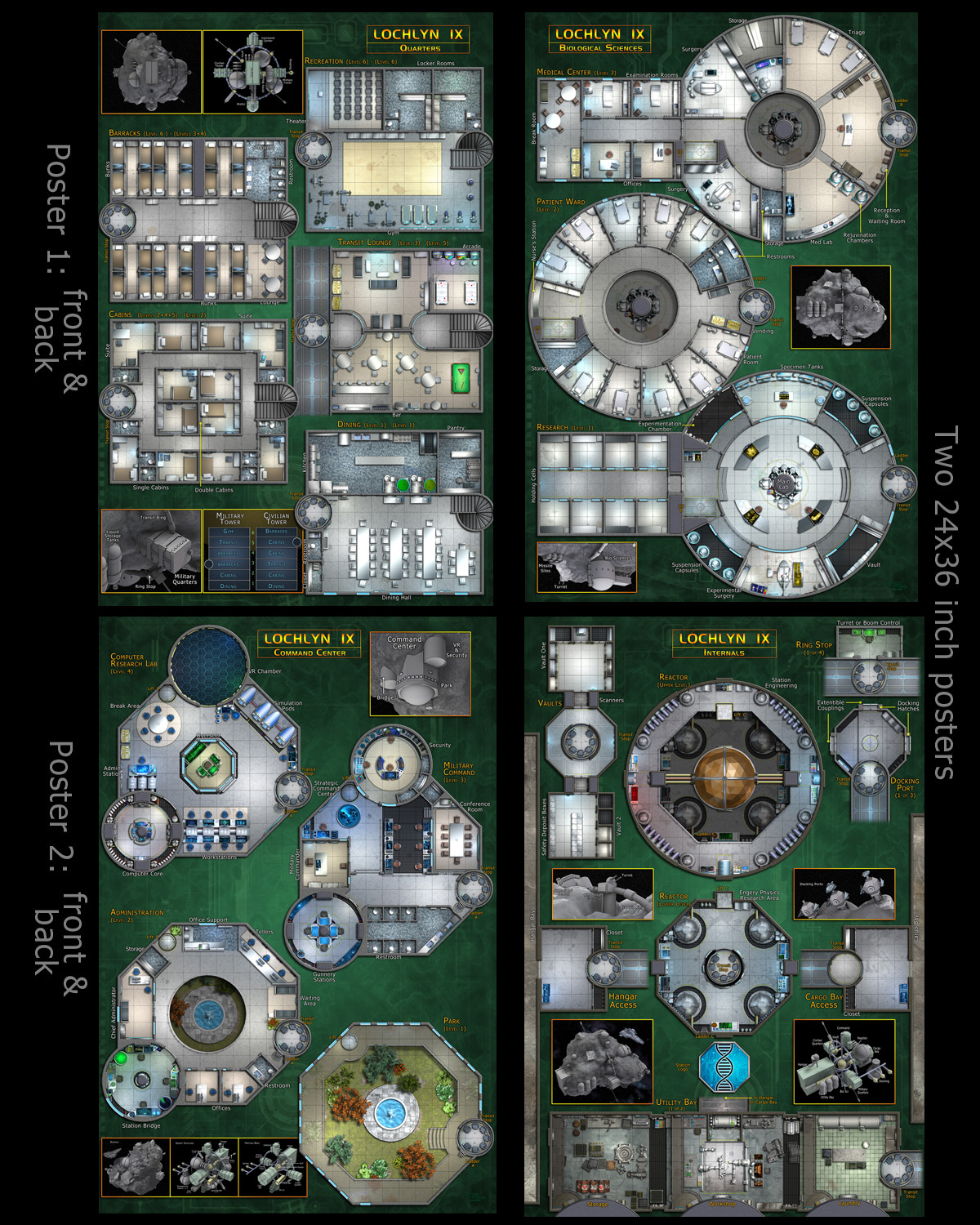 Lochlyn IX is a combination research outpost, medical facility, and defense platform with both civilian and military duties. The habitable areas of the station are divided into sections connected by a transit tube system. Due to the rock's rotation "down" is always away from the core (out into space) and the station is at zero G along the axis of rotation. Taking advantage of the low G along the axis of rotation are a large rectangular hangar at one pole and an octagonal cargo bay on the other.