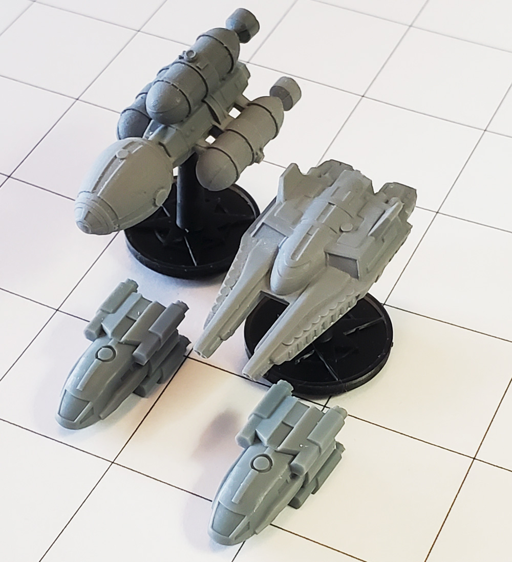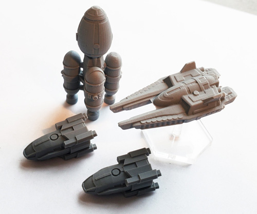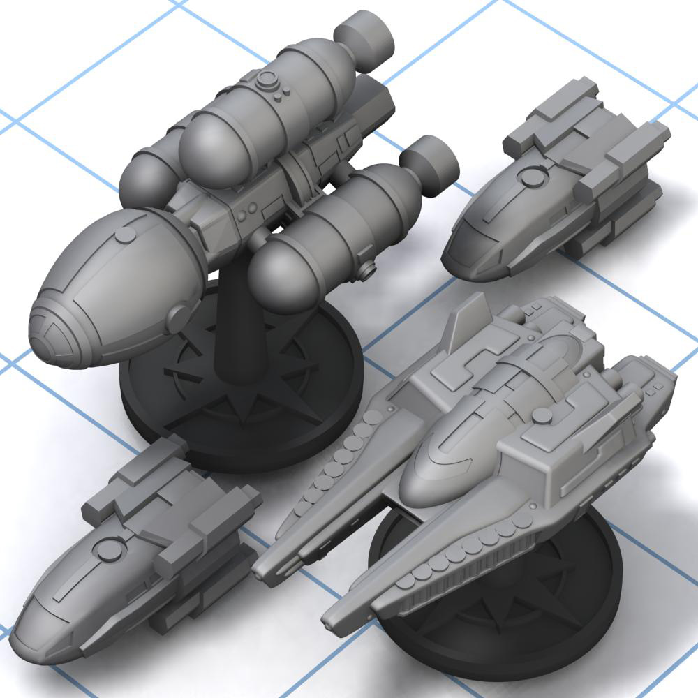 The set of miniatures sold above includes 1 Nightingale, 1 Kalmar, and 2 K62 Cargo Shuttles.