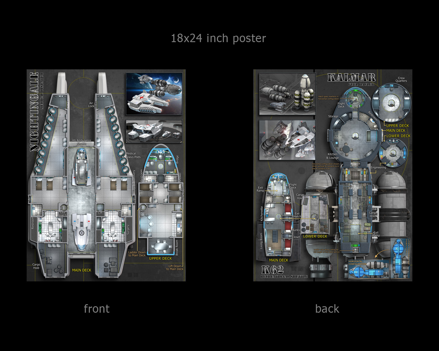 This small ship set features a half-sized poster and three ships: the Nightingale medical transport, the Kalmar tanker, and the Cavalo K62 Shuttle.