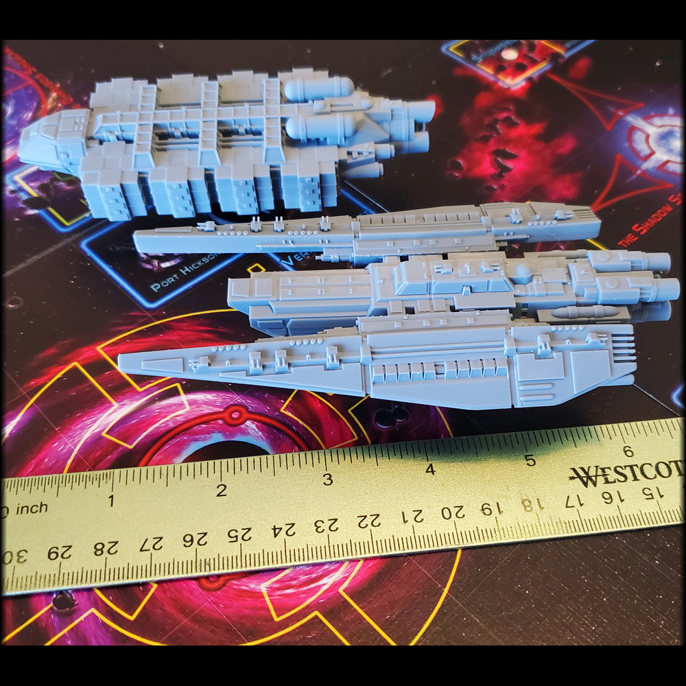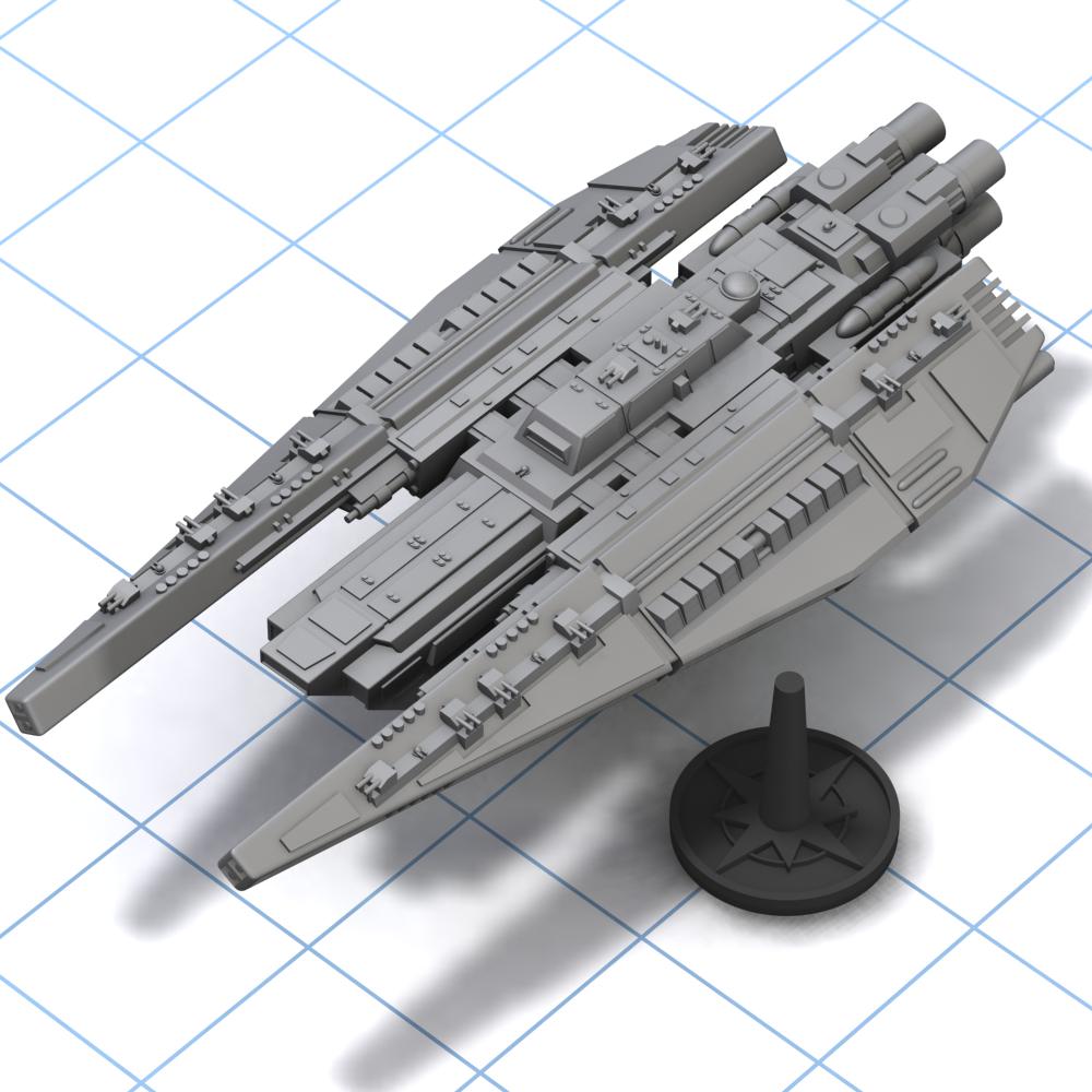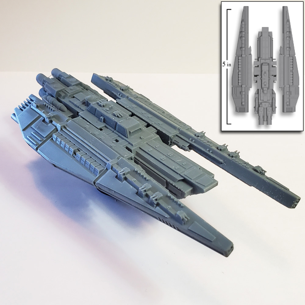 Note that the unpainted 3D-printed resin miniature comes in three pieces (hull and both 'wings') and gluing may be required for assembly.
