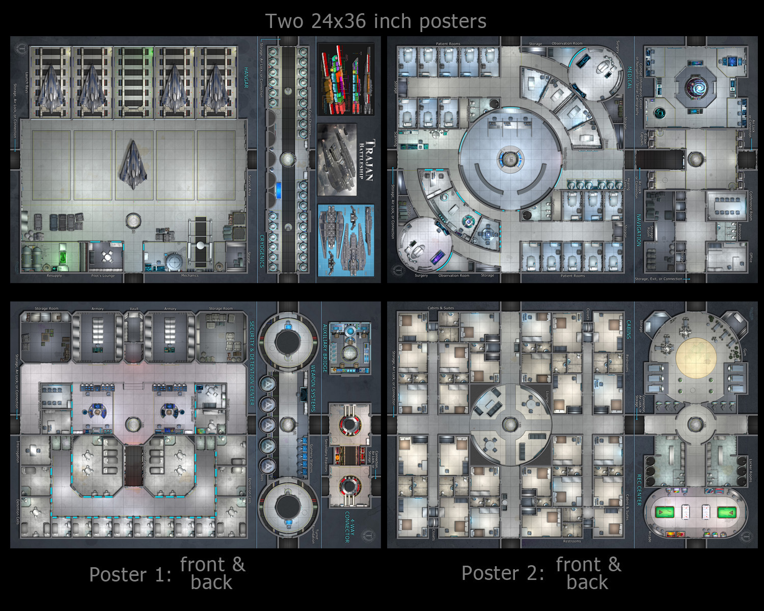 in addition to the two Trajan-specific posters sold above (so four poster total). All four required posters are available here for a special price. Because of its size, map sections are used multiple times to lay out the entire ship.