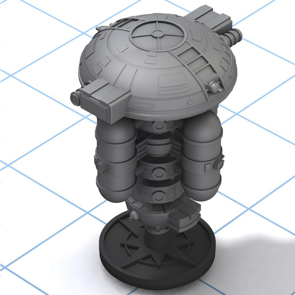 This small outpost is designed to serve a variety of functions: listening post, supply depot, garrison, or truck stop. It houses a crew of 10 with barracks and facilities for 16 additional personnel or guests. It boasts a dedicated detention center and hangar bays for two shuttles, as well as administrative offices and a restaurant/lounge. Whether the characters are just visiting (voluntarily or not), or looking for a place to call their own, this little station can fit the bill.