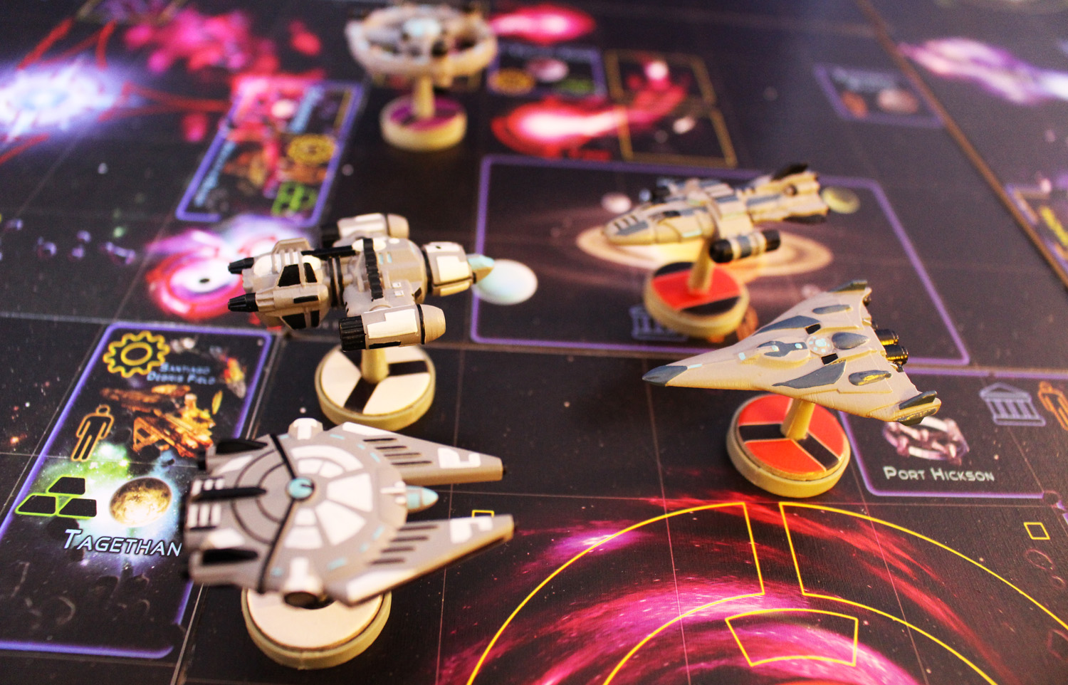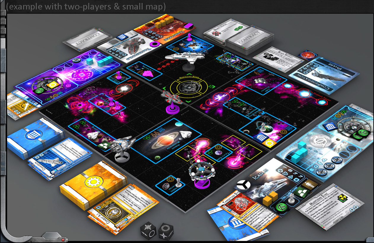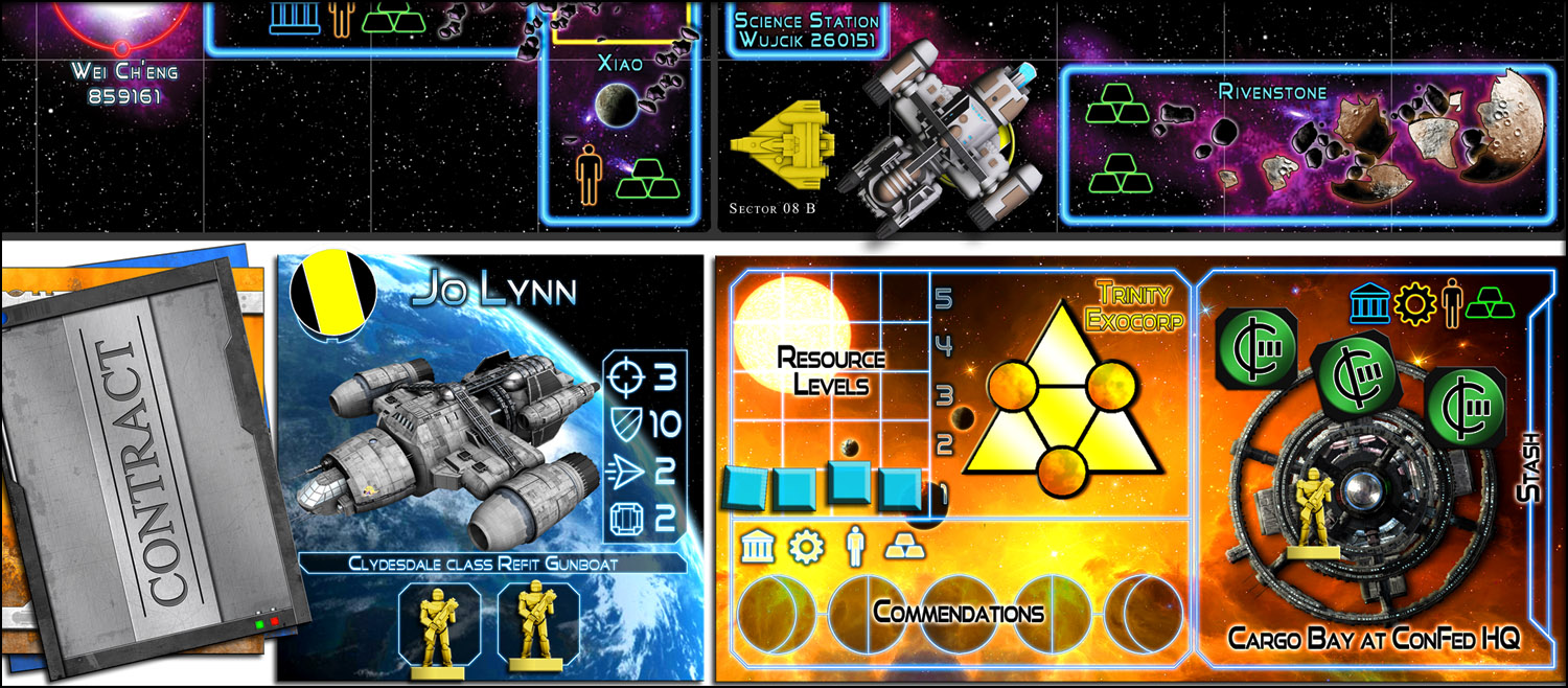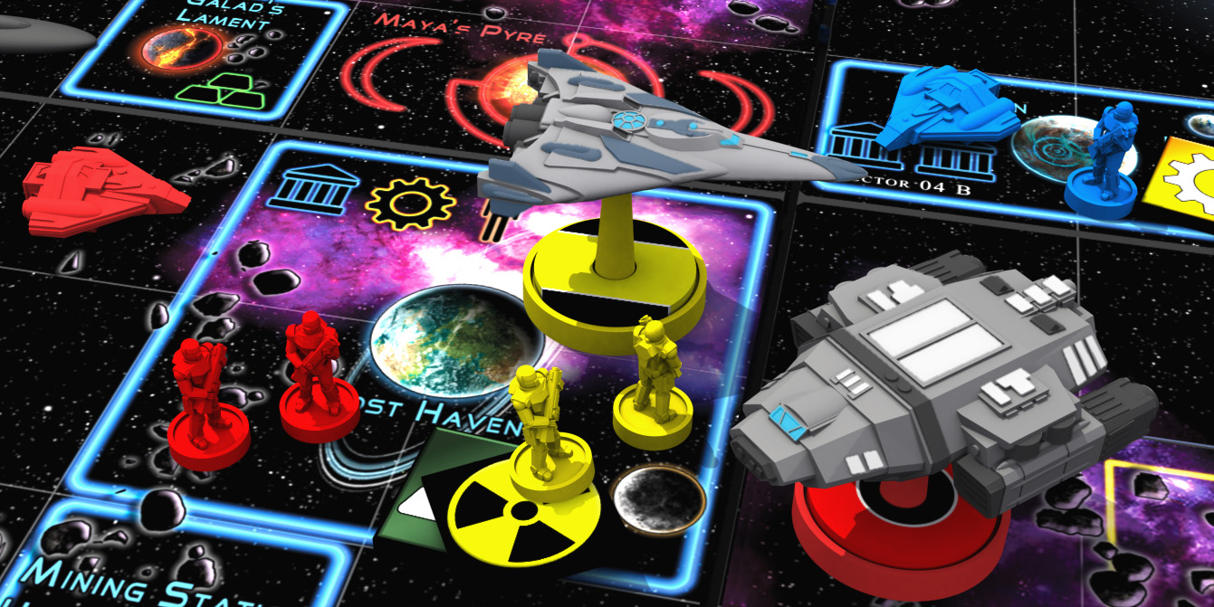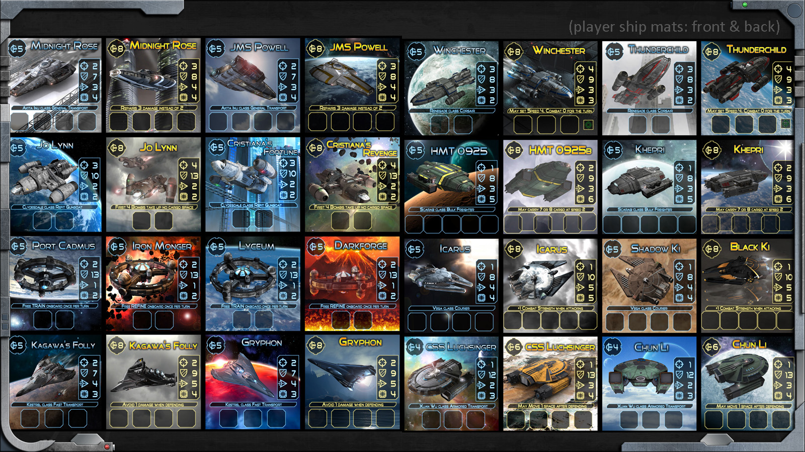 I am currently sold out of the game and a reprint is unlikely. I do have extras of the colored plastic bits, ship mats, player mats, tokens, and sector tiles. I do not have any more of the starship game pieces, though resin versions of individual ships are for sale. ![]() The game was on Kickstarter in May of 2015, went into production in December, and started distribution in April of 2016. You can still view the Kickstarter Campaign if you'd like, or visit BoardGameGeek for the latest images, discussion, and information. ![]()