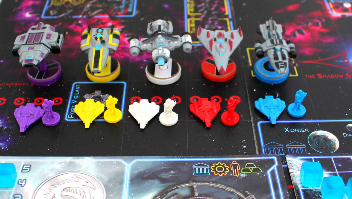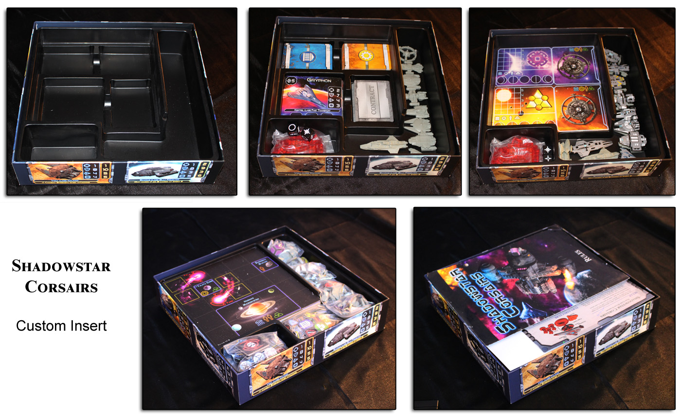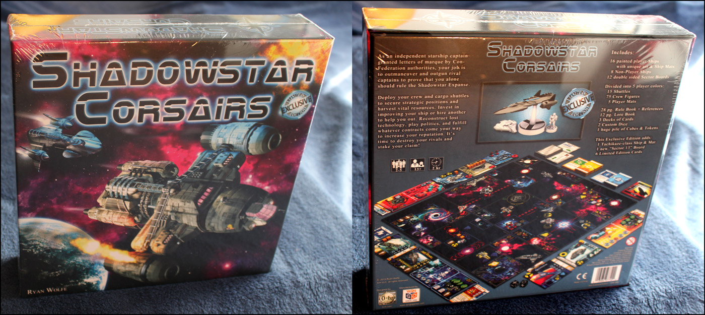 Shadowstar Corsairs is a deluxe board game for 2 to 5 players set within the Future Armada universe. As independent captains granted letters of marque by the ConFederation, the players vie for control of a dangerous but lucrative area of space known as the Shadowstar Expanse. Entering with one old transport and a few loyal crew, they may eventually command a fleet of three customized starships, cargo shuttles, and more than a dozen squads of seasoned soldiers. Ships will be upgraded, territory claimed, and rivals engaged as each Corsair attempts to gain a reputation by demonstrating political influence, technical savvy, and a willingness to do whatever it takes to secure the Expanse!