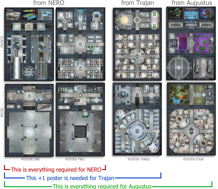 Because of its size, map sections are used multiple times to lay out the entire ship.