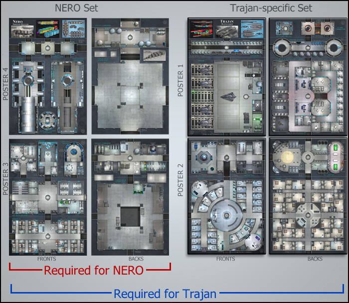in addition to the two Trajan-specific posters sold above (so four poster total). All four required posters are available here for a special price. Because of its size, map sections are used multiple times to lay out the entire ship.