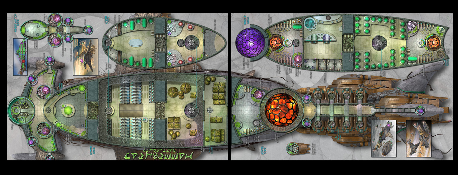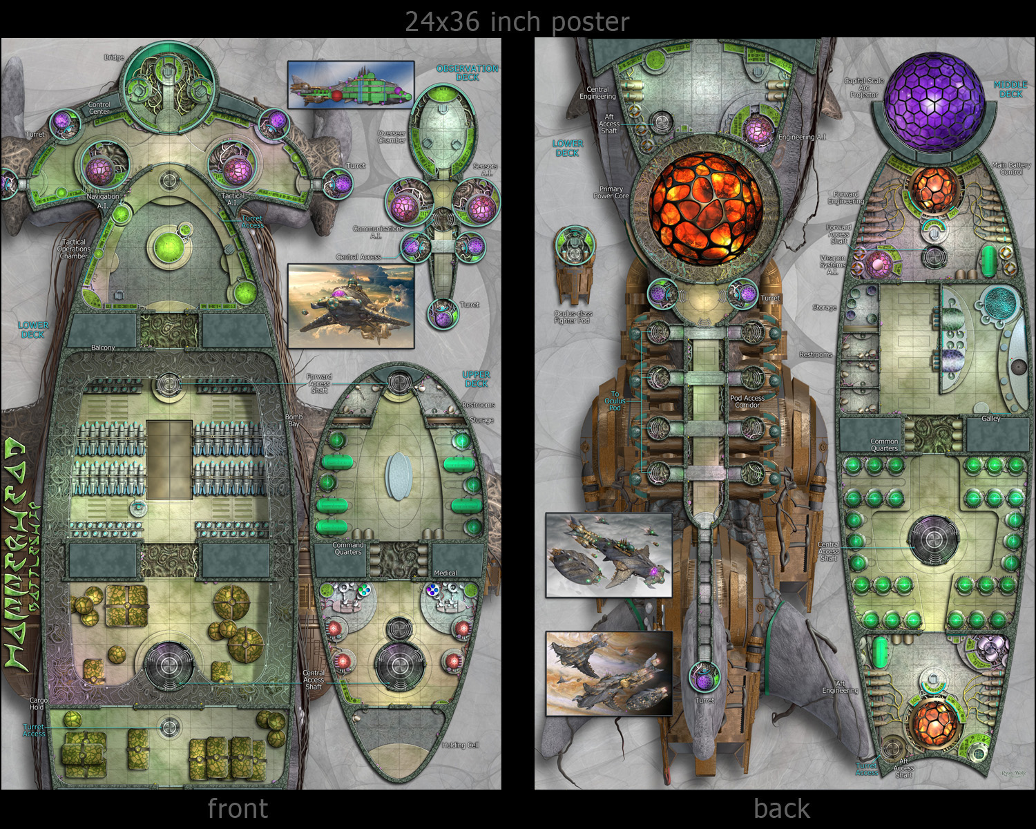 the Mokkaran-class, or “Hammerhead”, is a warship designed to combat the Terran ConFederation. The four-level interior is a mix of organic growth and technology. It has a large bomb bay and a cargo hold, as well as crew quarters, medical, and tactical chambers. Armed with numerous turrets, planetary assault missiles, and a capital-scale arc projector, this battleship also carries 8 fighter pods and a crew of 50.