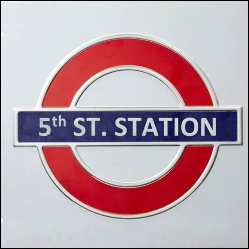 * The back is a subway stop including a few subway cars and a stretch of tunnel.