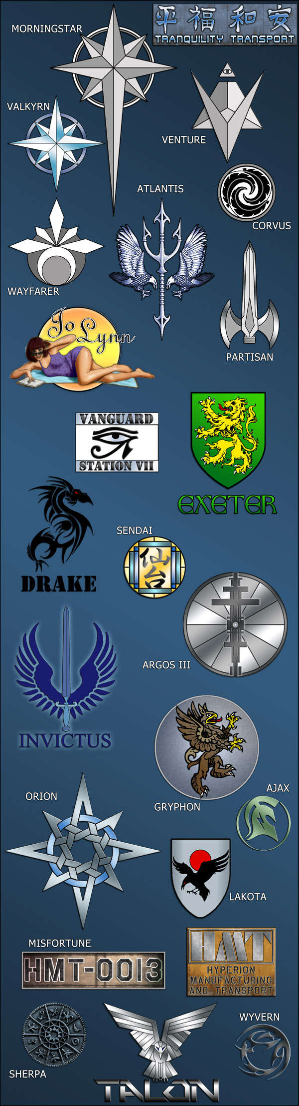 The first set of logos are the insignia used by the various starships in my Future Armada product line.